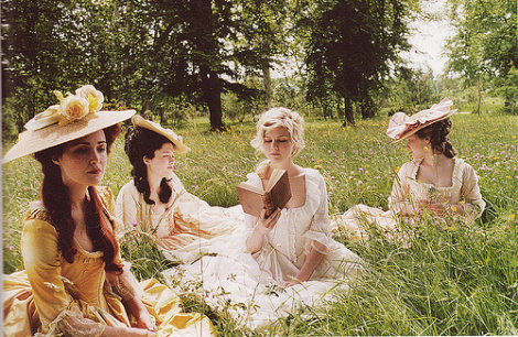 Puesto que las normas de la corte francesa no permitían a las grandes damas utilizar el vestido más que una vez; utilicé el mismo blanco pero esta vez en un camisón más cómodo para tumbarme a leer el diccionario de Voltaire en el jardín de Le Nôtre junto a mis amigas.